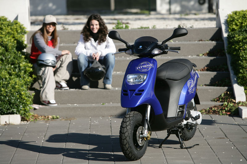 Компания Piaggio представила новый Typhoon 50 по очень соблазнительной цене – всего 1400 евро или 1850 долларов США. Новинка интересна внешне и показывает прекрасные результаты по динамике и скорости, благодаря обновленному двигателю. Двигатель теперь четырехтактный, четырехклапанный, объемом 49 см3. Охлаждение – воздушное. Также новинка оборудована 14 дюймовыми колесами и большим баком. Новый двигатель способен раскрутиться до 9500 оборотов, выдавая при этом 4,5 л.с. мощности. Максимальный крутящий момент достигается при 8000 оборотах. При этом максимальная скорость составляет скромный по итальянским меркам 65 км/ч.